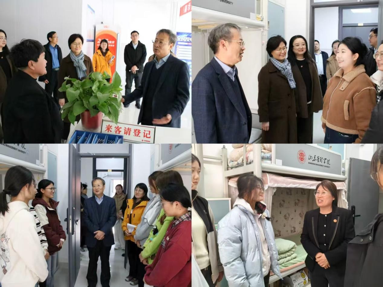 活动现场,老师们依次走访各“宜居宿舍”,沉浸式感受每间宿舍独特的文化氛围。交流过程中,老师们与学生亲切互动,详细询问学习进度、生活适应等情况,针对学业规划、专业发展等学生关心的问题耐心答疑,同时分享了实用的生活技巧与时间管理方法。韩作生对同学们的成长提出殷切期望,他勉励大家要明确学业目标,主动规划成长路径,同时强调宿舍是集体生活的重要载体,成员之间应互帮互助、携手共进,让宿舍成为学业进步的“助推器”、身心健康的“避风港”。